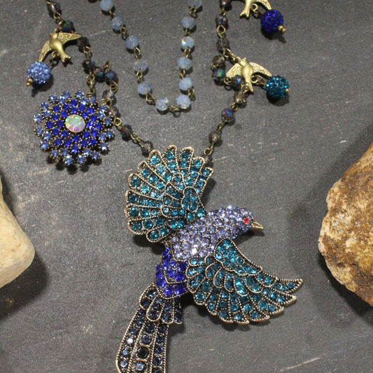 Wings Spread Wide Soaring Blue Bird Layered Necklace