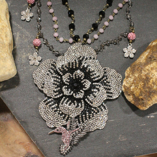 Power In The Flower Classic Pink Humming Bird Layered Necklace