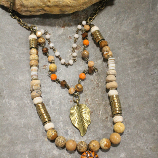 Nature Sings, Leaves Fall Triple Layered Necklace