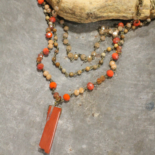 Rich Nickel & Bronze Pendant Stone Drop Necklace