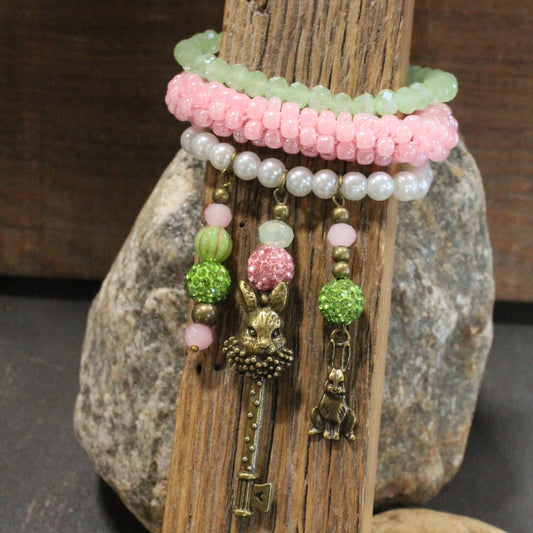 Flower Garden Pink Bunny Bracelet Set