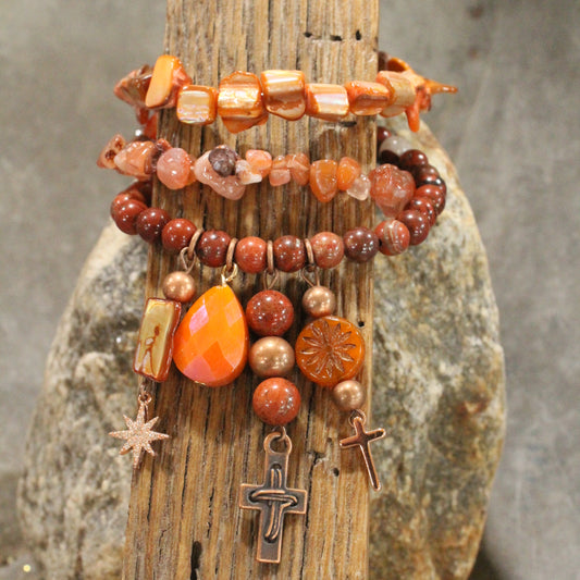 Shades Of Rusty Cross Charm'd Bracelet Set