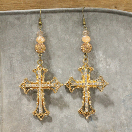 Golden Bling Cross Dangle Drop Earrings