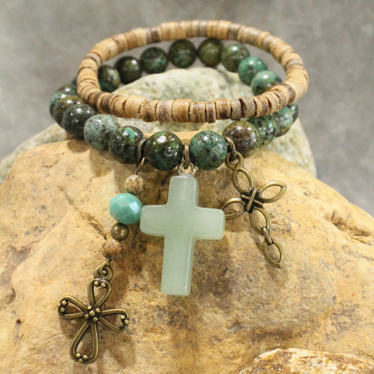 Bread Of Life Cross Charming Stretch Bracelet Set