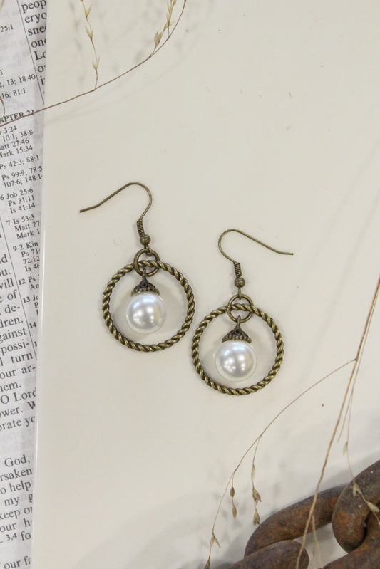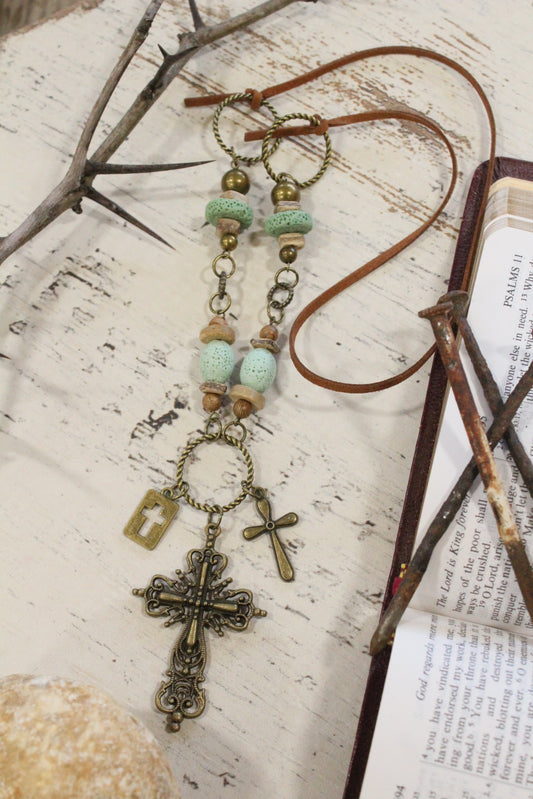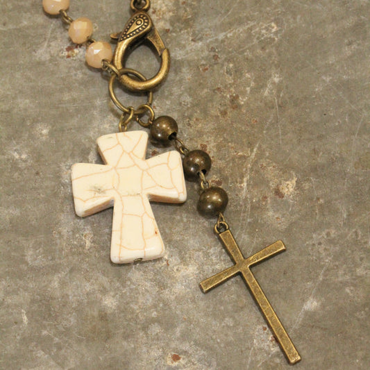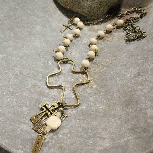 Stone & Bronze Cross Pendant Drop Faith Charm Necklace