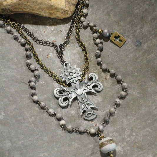 Vintage Platinum & Bronze Pendant Cross Layered Necklace