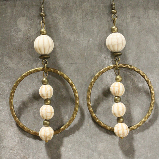 Multi-Colored Natural Stones & Patina Coin Drop Pendant Earrings