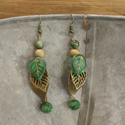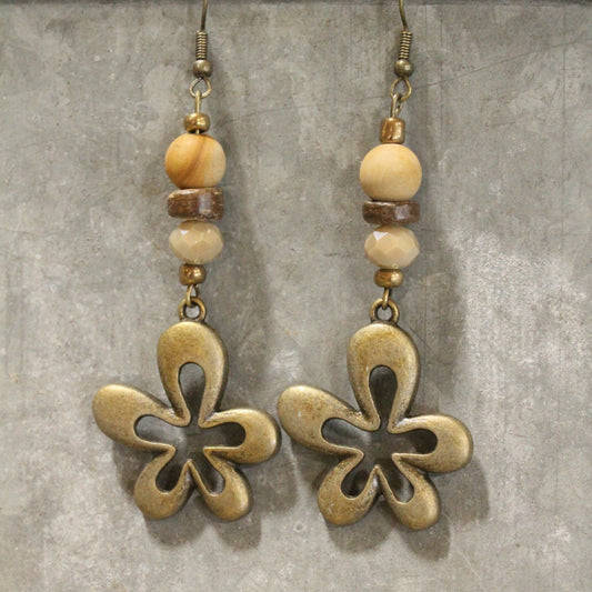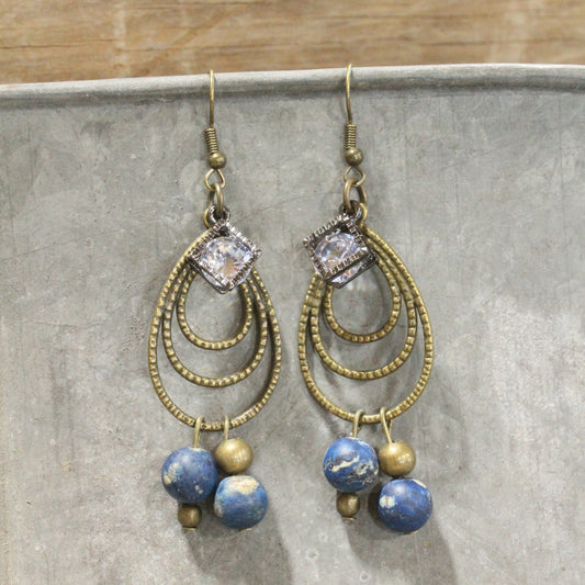 Rich Nickel & Bronze Pendant Stone Drop Earrings