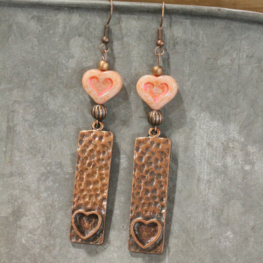 Vintage Hoop With Lava Rock & Czech Sunflower Accent Earrings