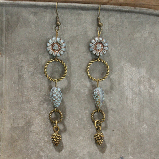 Czech Out These Pinecones & Sunflower Dangle Drop Earrings