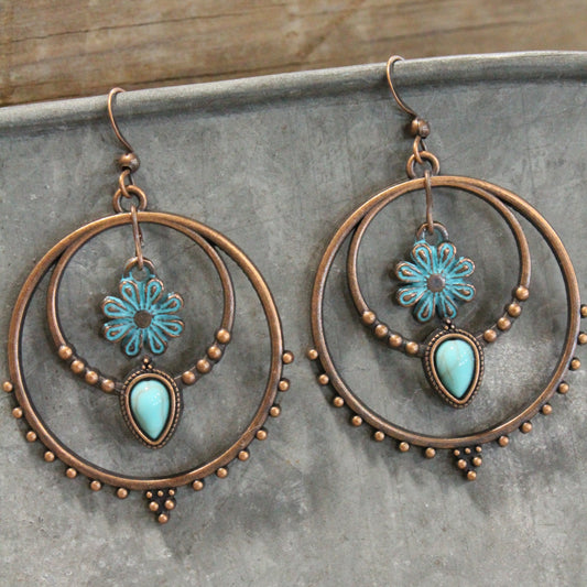 Ethnic Round Vintage Verdigris Dangle Earrings