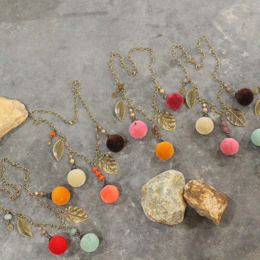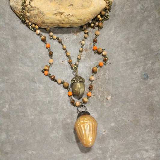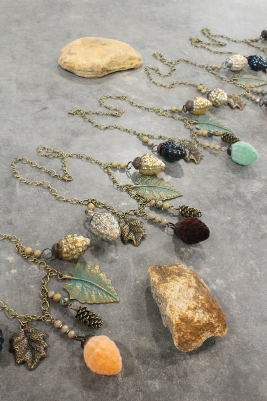 Flocked Pumpkin Patch & Leaves Charming Necklace