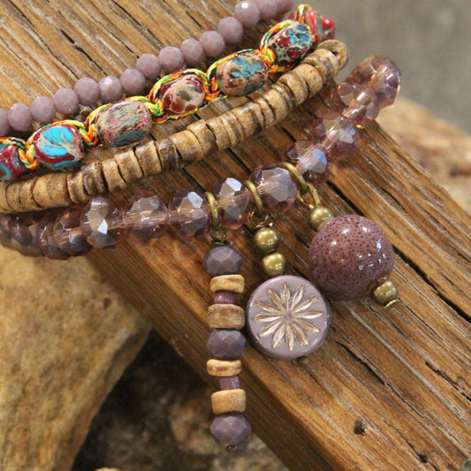 Lavender Stone & Czech Charm Bracelet Set