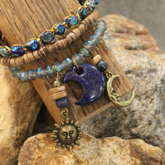 Mint & Bronze Beaded Rosary Double Layer Necklace