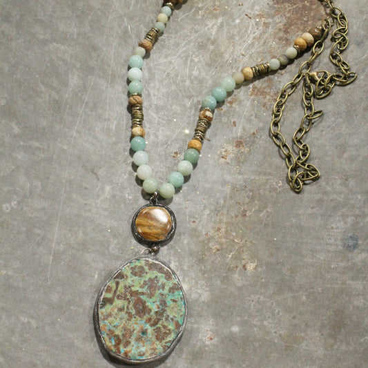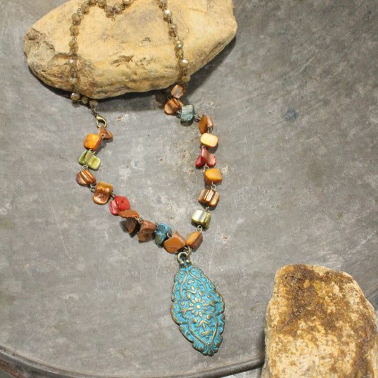 Melt In Your Mouth Mint & Bronze Flower Charmed Necklace