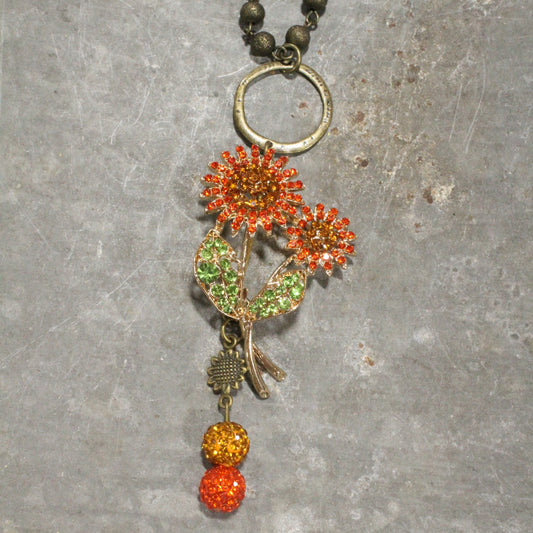 Sunflower Czech & Patina Flower Pendant Drop Earrings