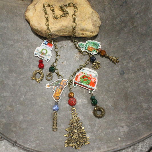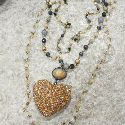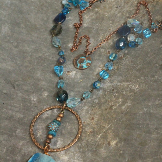 Turquoise & Copper Flower Pendant Double Layer Necklace