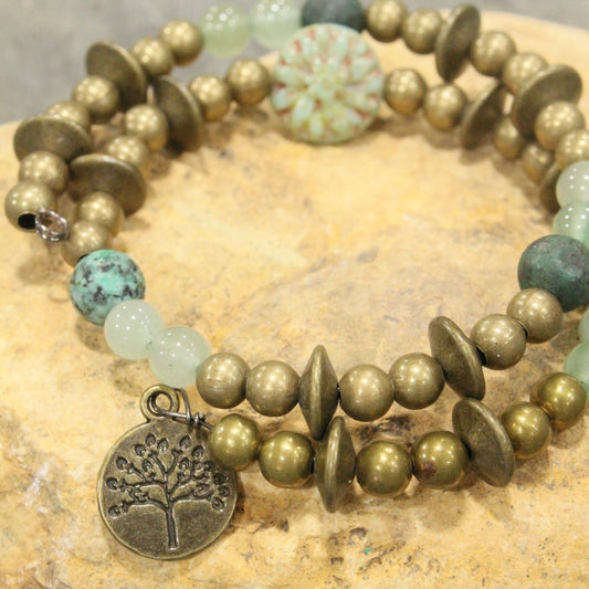 Tree Of Life Czech Coin Jade Wrap Bracelet