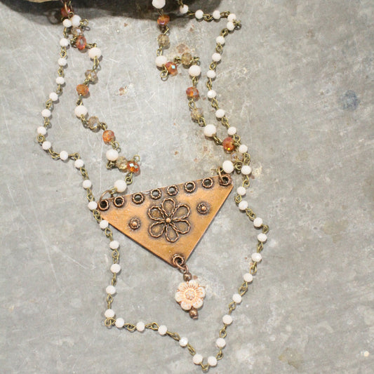 Vintage Copper Flower Czech Dangle Drop Earrings