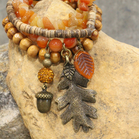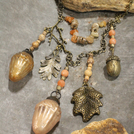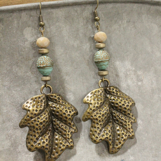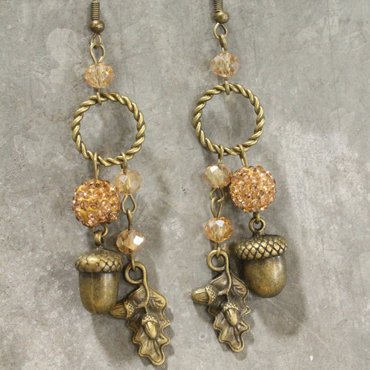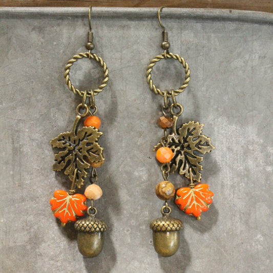 Czech Out These Acorn & Oak Leaf Dangle Drop Earrings