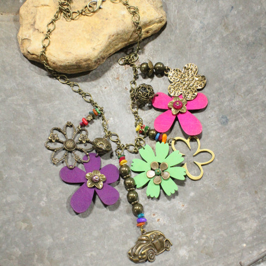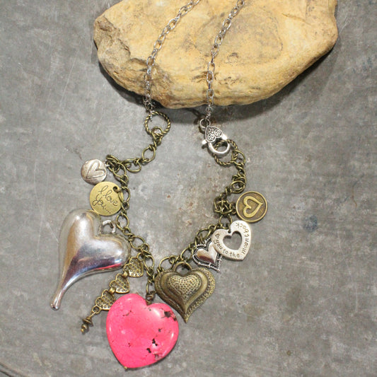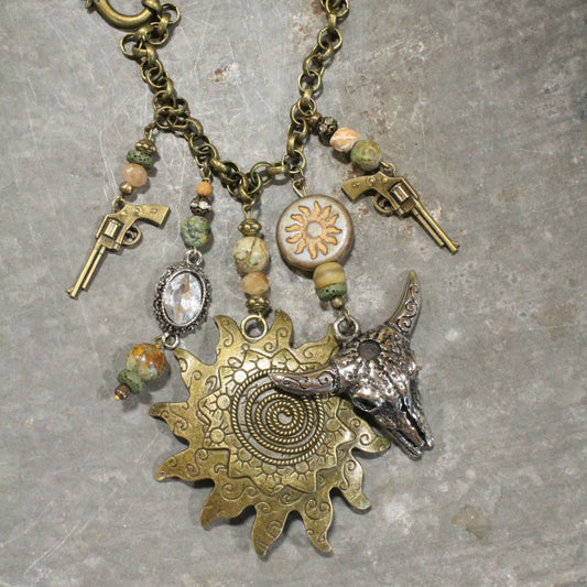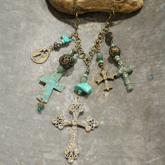 Vintage Crosses With Jade & Patina Pendant Charmed Necklace