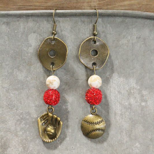 Double Bubble Baseball Dangle Drop Earrings