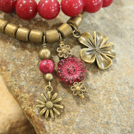 Raising The Bar Charmed Raspberry Stretch Bracelet Set