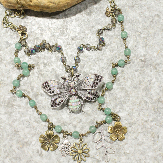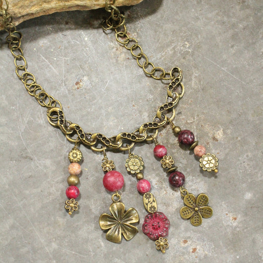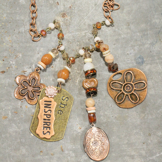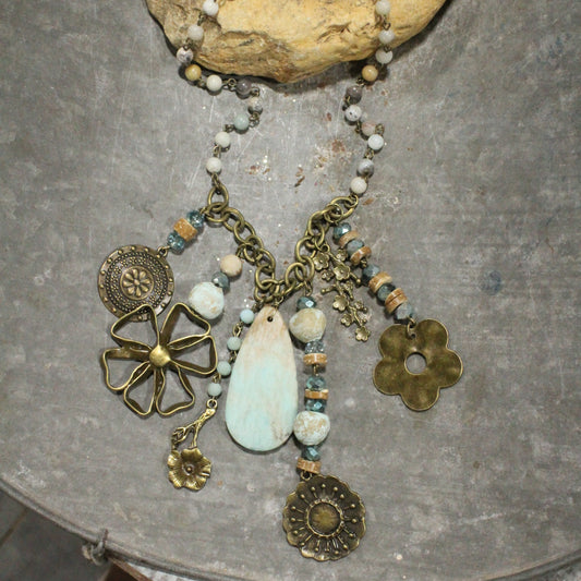Melt In Your Mouth Mint & Bronze Flower Charmed Necklace