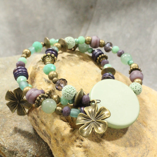 Lilac Czech Flower & Copper Charmed Layered Necklace
