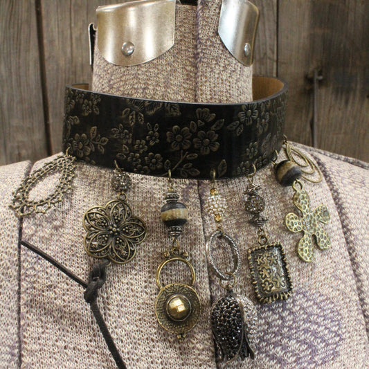 Turquoise Stone & Czech Flower Charm Bracelet Set