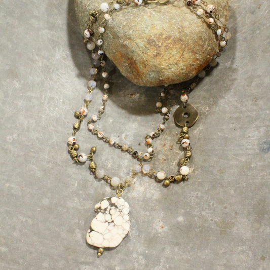 Vintage Stone Drop & Czech Glass Pendant Necklace