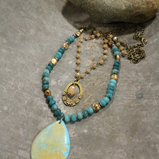 Layers Of Teal & Teardrop Stone Pendant Necklace
