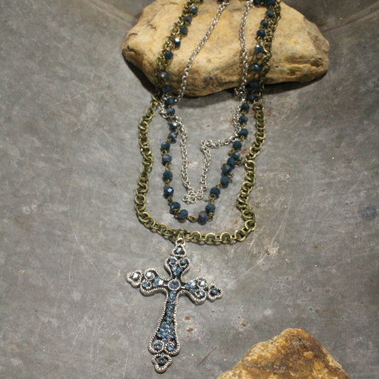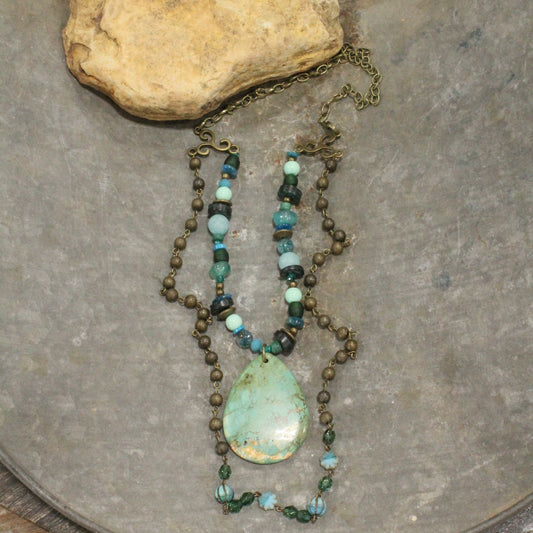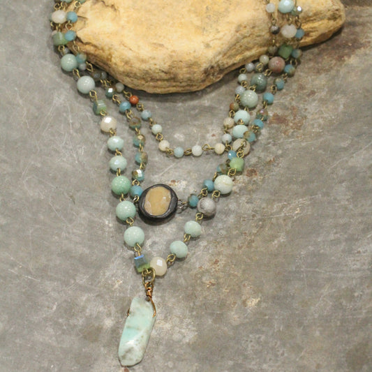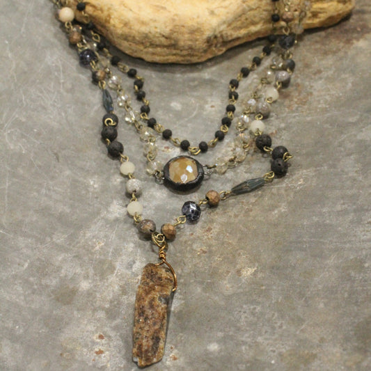 Bohemian Layered Rusty Orange Stone & Crystal Necklace