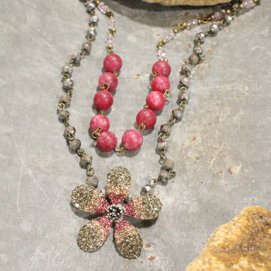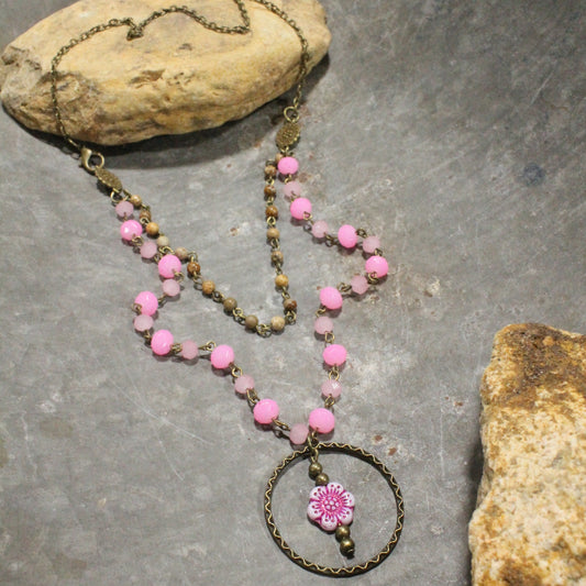 Picasso Wildflower Glass Bead Candy Pink Necklace