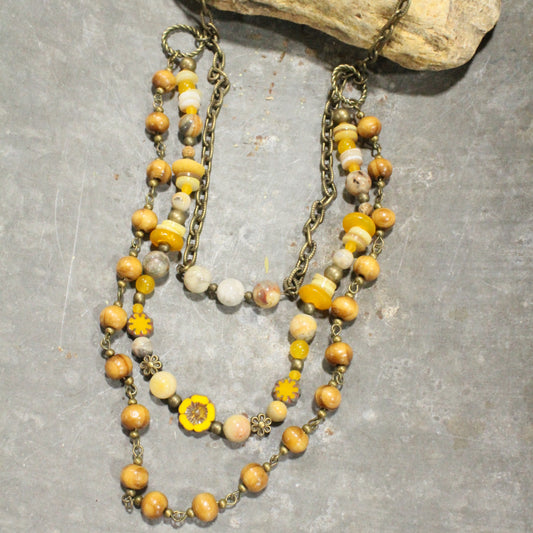 Three Wishes Stone & Jade Triple Layered Necklace