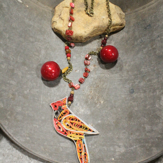 Vintage Recycled Cardinal Charming Necklace