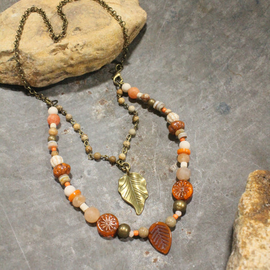 Nature Sings, Leaves Fall Triple Layered Necklace