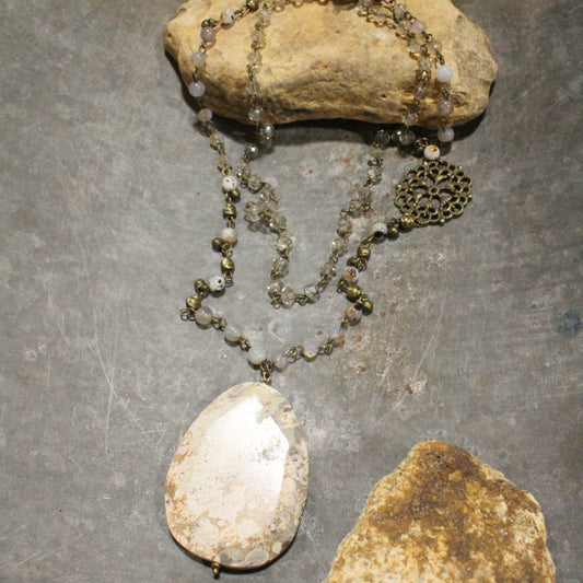 Bohemian Layered Ancient Stone Drop Necklace