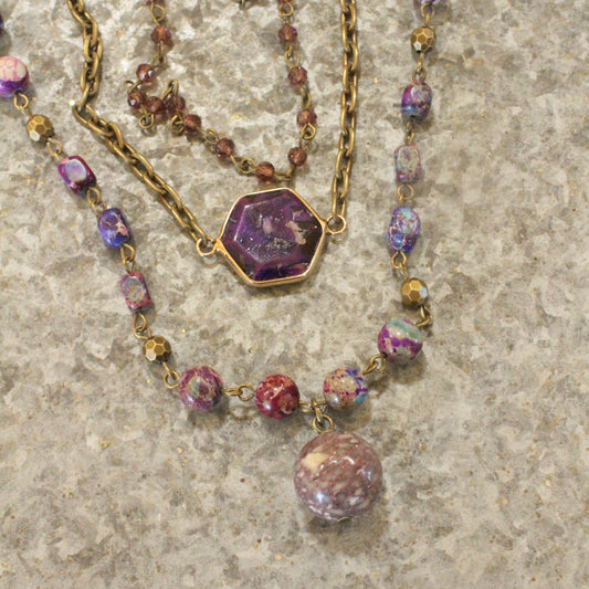 Czech Glass Layered Vintage Bronze Drop Ethnic Pendant Necklace