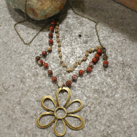 Stone & Bronze Vintage Flower Drop Pendant Necklace