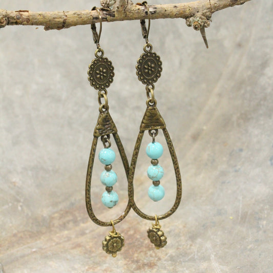 Bronze Teardrop Turquoise Stone Drop Earrings
