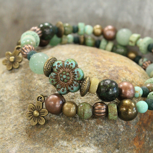 Always In Bloom Bronze Flower & Mint Stone Necklace