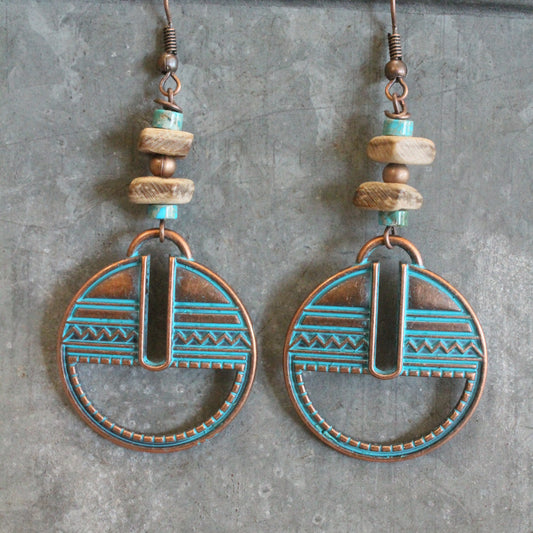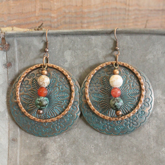Ethnic Round Vintage Verdigris Dangle Earrings
