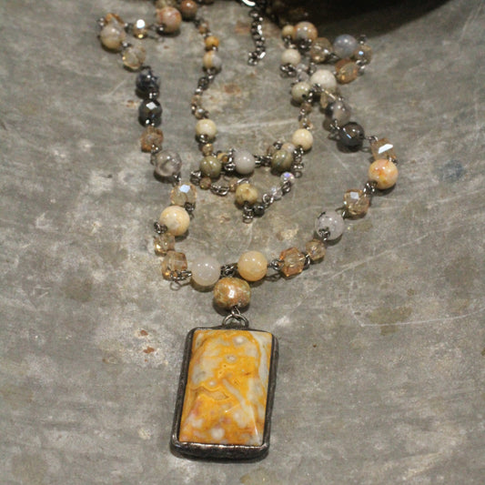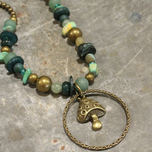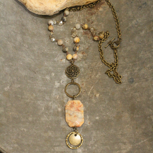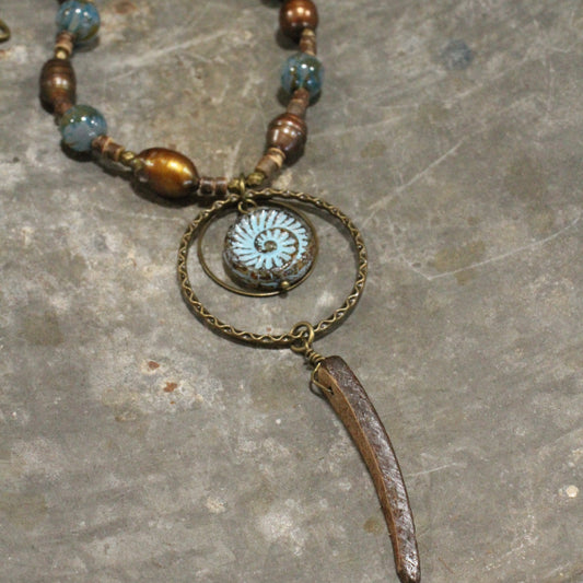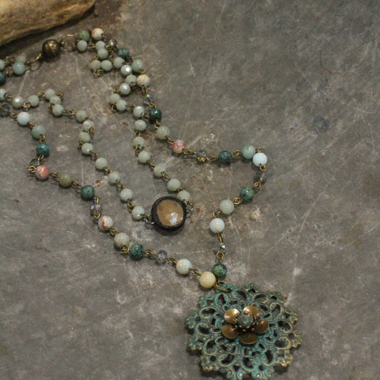 Filigree Flower Bronze & Mint Layered Switchable Lengths Necklace