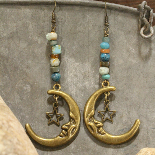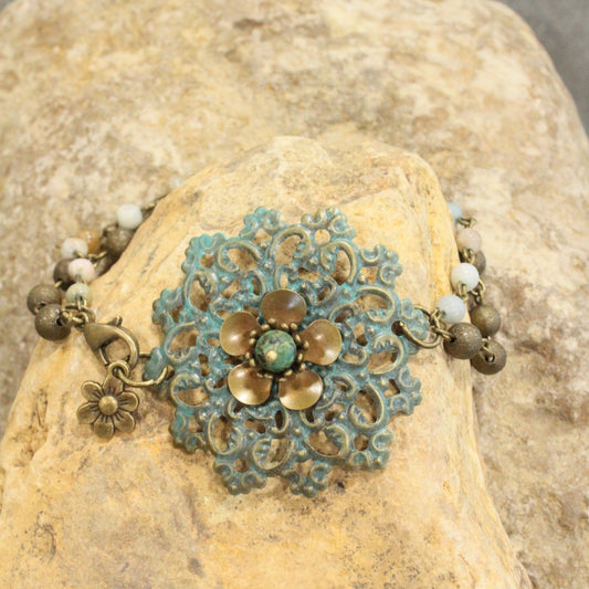 Filigree Bronze Flower & Stone Double Chain Bracelet Set