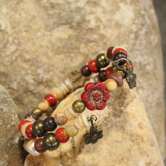 Czech Flower Vintage Elite Stone Wrap Bracelet