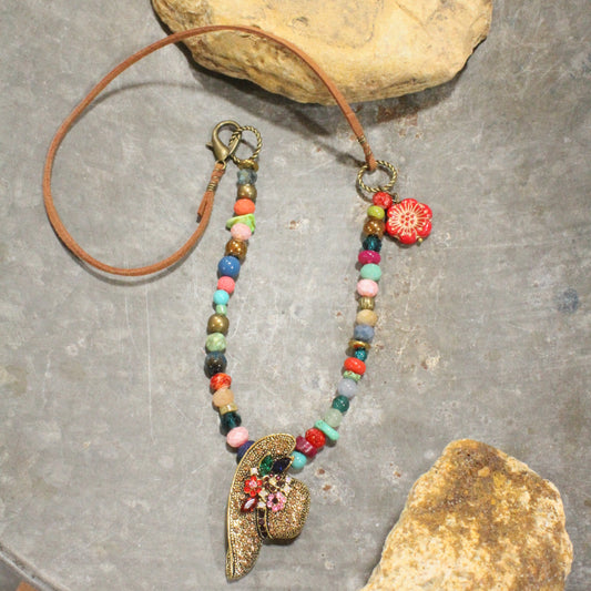 Picasso Wildflower Glass Bead Candy Pink Necklace