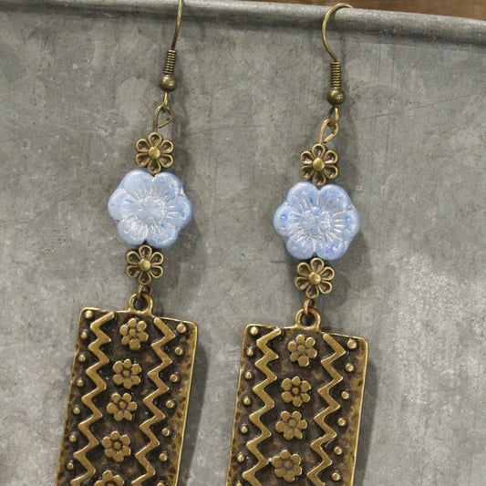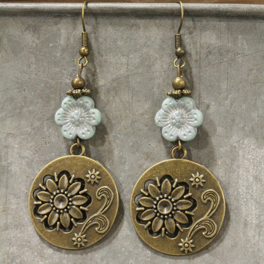 Flourishing Floral Czech Light Blue Charm Dangle Earrings