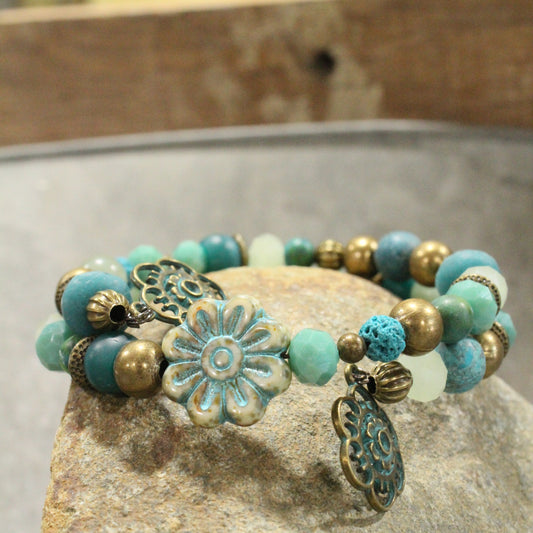 Dying Over Druzy Stone & Czech Flower Wrap Bracelet