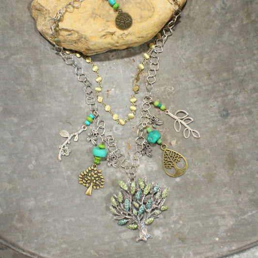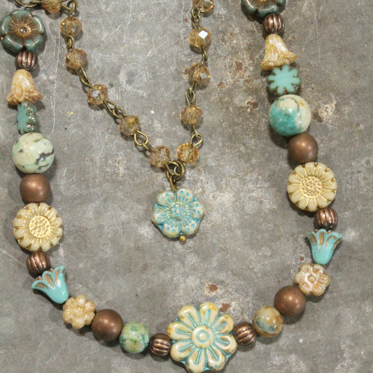 Melt In Your Mouth Mint & Bronze Flower Charmed Necklace